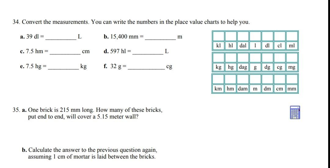 Solved 34 Convert The Measurements You Can Write The Nu Chegg Com